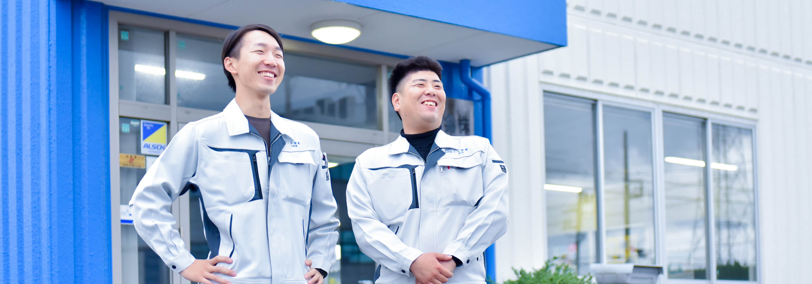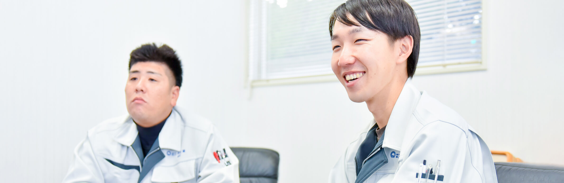 条件に当てはまる企業のなかでも三洋産業に感じた魅力は、営業から施工管理まで、一貫して携われるところ。たとえば営業職で入社した場合、一般的には営業一筋でやっていくことになるじゃない? でも三洋産業は、営業活動から施工管理までをひとりで幅広く担当する。そこが他の会社と大きく違って、いいなと思ったんだよね。仕事内容以外の面でも、福利厚生が充実していることや、採用の過程で担当してくれた社員の方々の人柄がよかったことも好感が持てた。