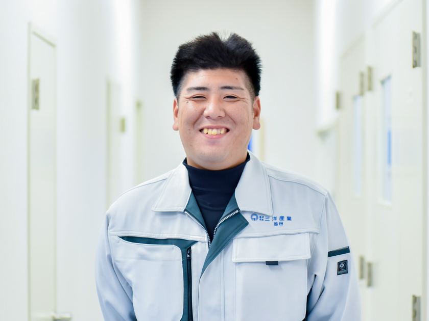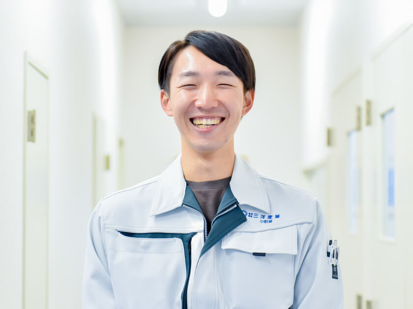 僕の場合は三洋産業の会社説明会に参加したとき、採用担当の方が「出身学部は問いません」と言っていたから、不安はなかったかな。むしろそれを聞いたからこそ、入社したい思いを強くした感じ。