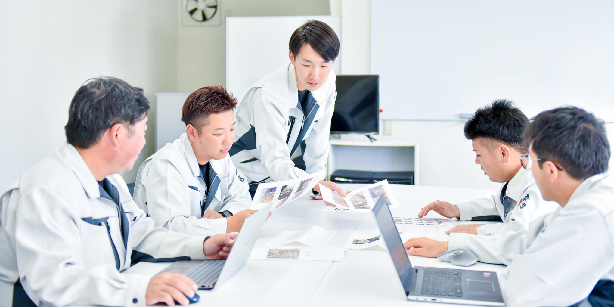 定例ミーティングを設け、各事業所のノウハウや課題を共有しています。前例のない工事が多いため、ミーティングの機会は貴重な情報源です。他事業所での好事例を共有することで、別事業所や若手社員の引き出しを増やすのに役立っています。面倒見のいい社員が多く、社員同士のコミュニケーションを図る場としても定着。三洋テクノサービスの社員も参加し、施工側の知見を吸収しながら、相互理解を深めています。