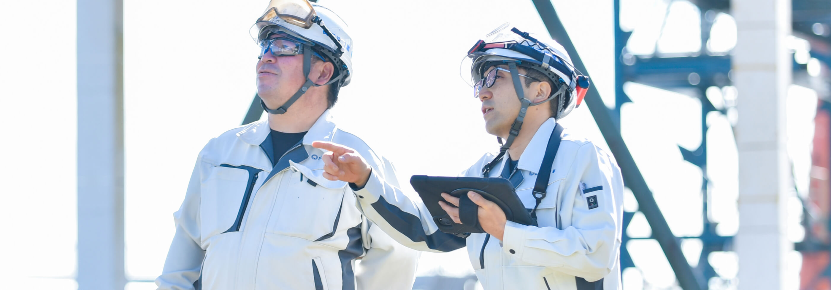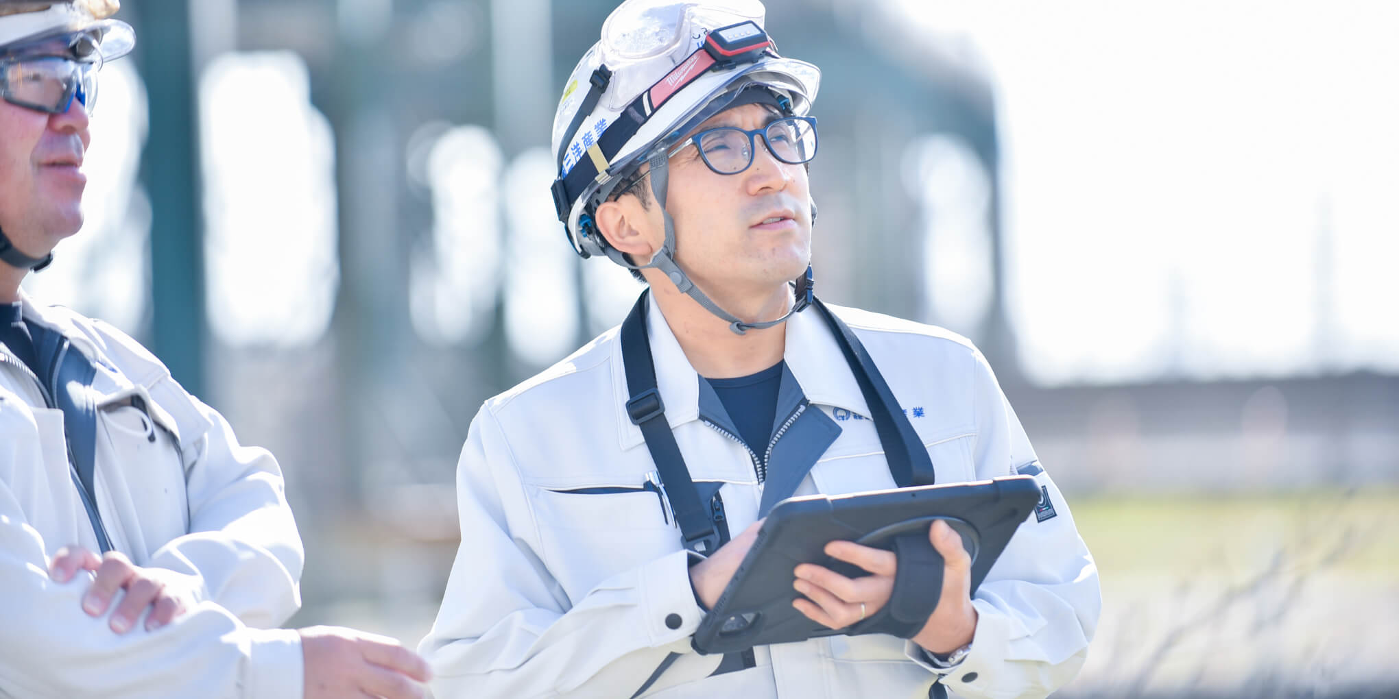 工事をするうえでもっとも大切なのは、安全性を確保することです。現場が化学プラントという特性上、火気厳禁のエリアや、少し触れただけで傷を負うような薬品を扱っているエリアもあります。一般的な建設現場に比べて、プラント内の工事はより注意しなければならないポイントが多いかもしれません。そのため現場に入ったら必ず、最前線の職人たちに安全対策を徹底するよう直接伝えています。工事内容に意識がいき安全対策が疎かになってはいけないので、現場監督の立場として指示したことが守られているか、現場をまわって確認作業をしっかりと行います。