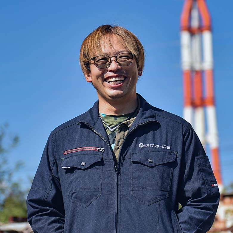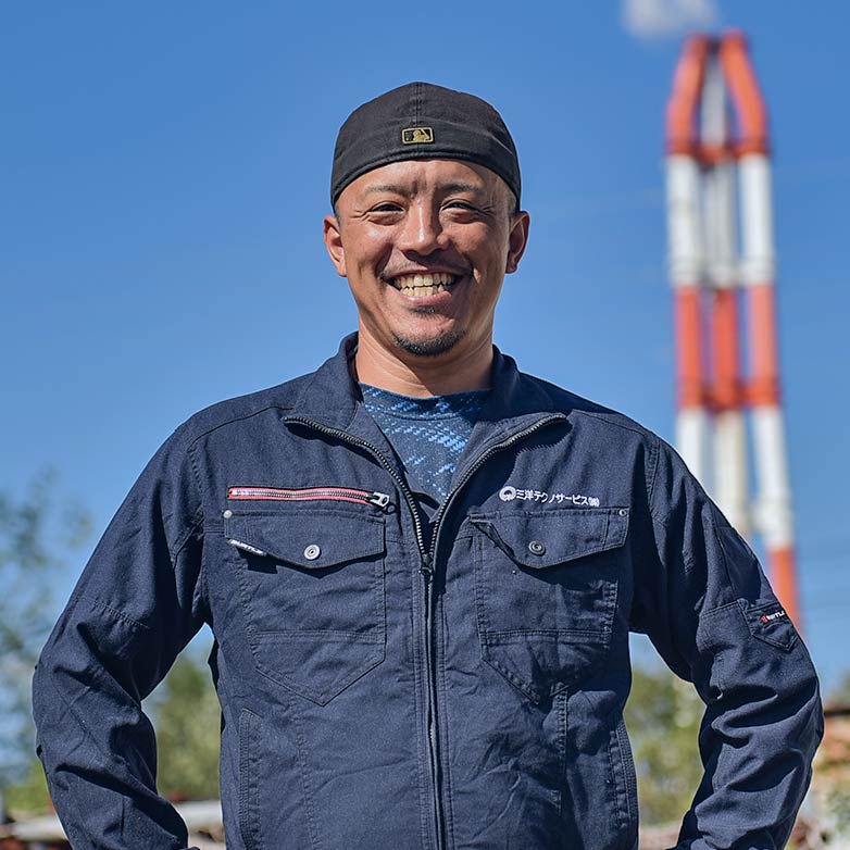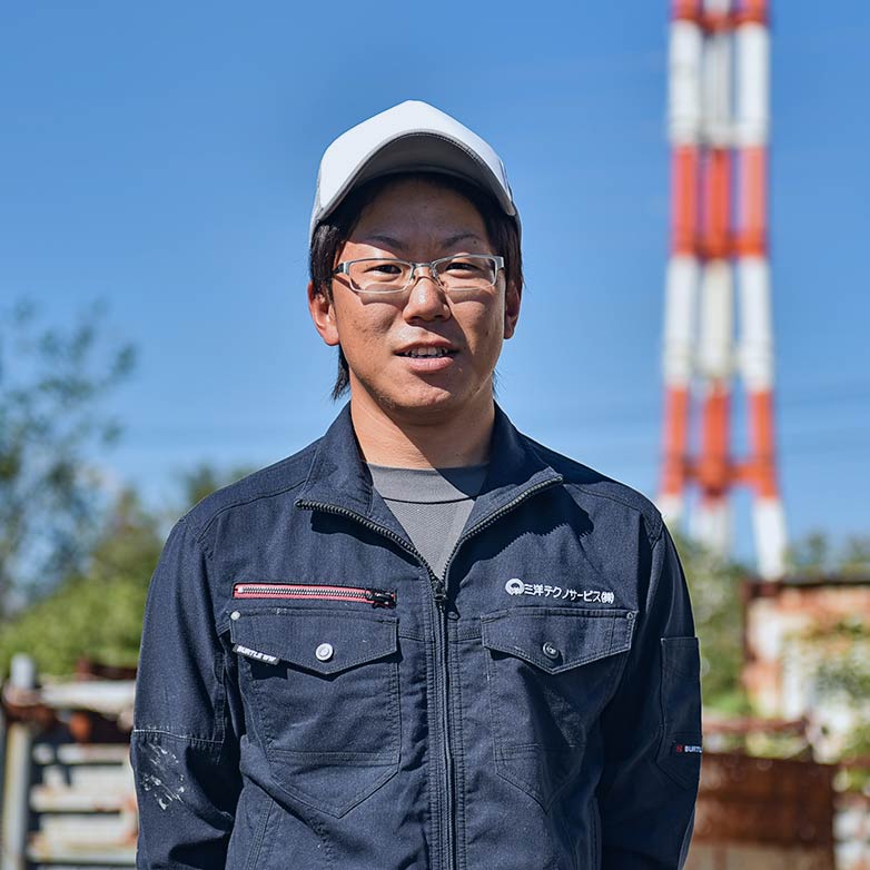 防水工として16年の経験を積み、プラントをはじめ、一般住宅の工事や公共工事に携わってきました。転職先を検討するなかで三洋テクノサービスを見つけ、自分がこれまで関わったことのない分野の仕事も経験できると知った時は、新たなチャレンジに対して前向きな気持ちになったのを覚えています。実際に入社してみて、不慣れな作業は周囲がサポートしてくれましたし、グループ会社の三洋産業が現場監督であるため、コミュニケーションも円滑で仕事がしやすいです。