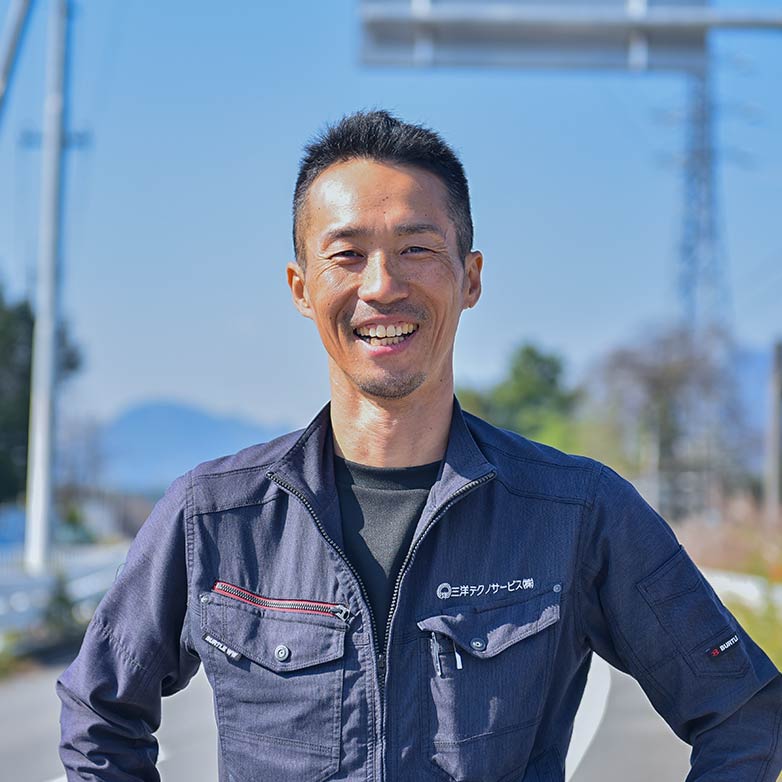 前職ではトラックドライバーを経験し、異業種からの転職で三洋テクノサービスに入社しました。入社当初は会社が設立されて間もない頃でしたが、現在は社員数が増え、活気にあふれた環境で仕事ができる喜びを感じています。未経験からこの会社に飛び込んだ私ですが、現場に入るうえで必要な資格の数々を取得し、専門的な技術を学び、チームをマネジメントする立場になるまで成長できました。待遇面では家族を安心させられる月給制であることが大きなメリットだと感じています。